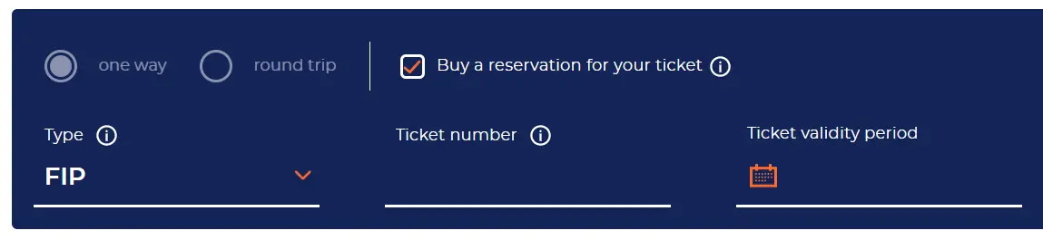 FIP 50 Fahrkarten können im Zug ausgestellt werden, unterliegen jedoch einer speziellen Gebühr (außer der Fahrgast steigt an einem Bahnhof ohne Fahrkartenverkauf zu). Fahrgäste müssen an der vorderen Tür des Zuges (in Fahrtrichtung) einsteigen und unmittelbar nach dem Einsteigen das Ticket beim Zugpersonal kaufen.