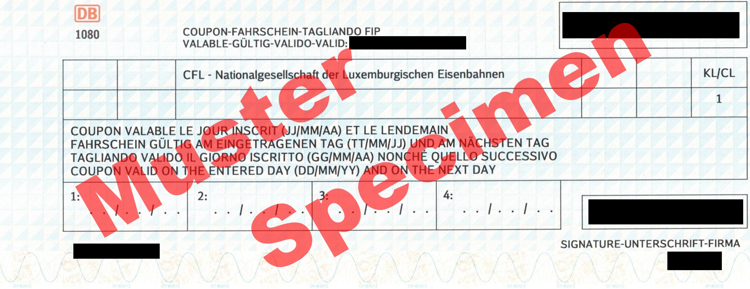 Tandis qu’un Coupon FIP est toujours émis pour exactement une entreprise ferroviaire, un Billet FIP 50 peut être émis pour plusieurs entreprises ferroviaires. Quelles entreprises ferroviaires acceptent exactement le billet peut être déterminé à partir du code CIV (plus d’informations sur Wikipedia).
