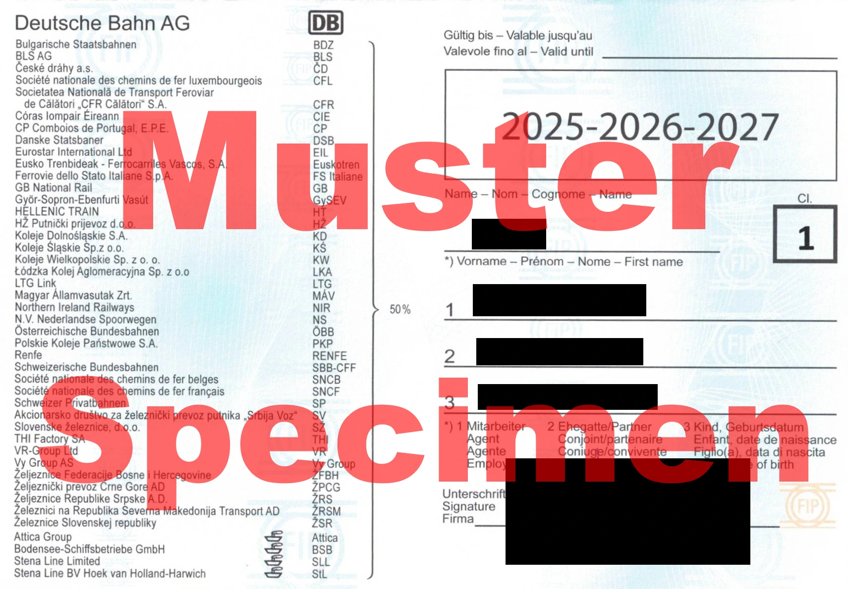 Certaines entreprises ferroviaires permettent également aux employés d’obtenir des Cartes FIP pour leurs ayants droit, leur permettant d’acheter des Billets FIP 50.